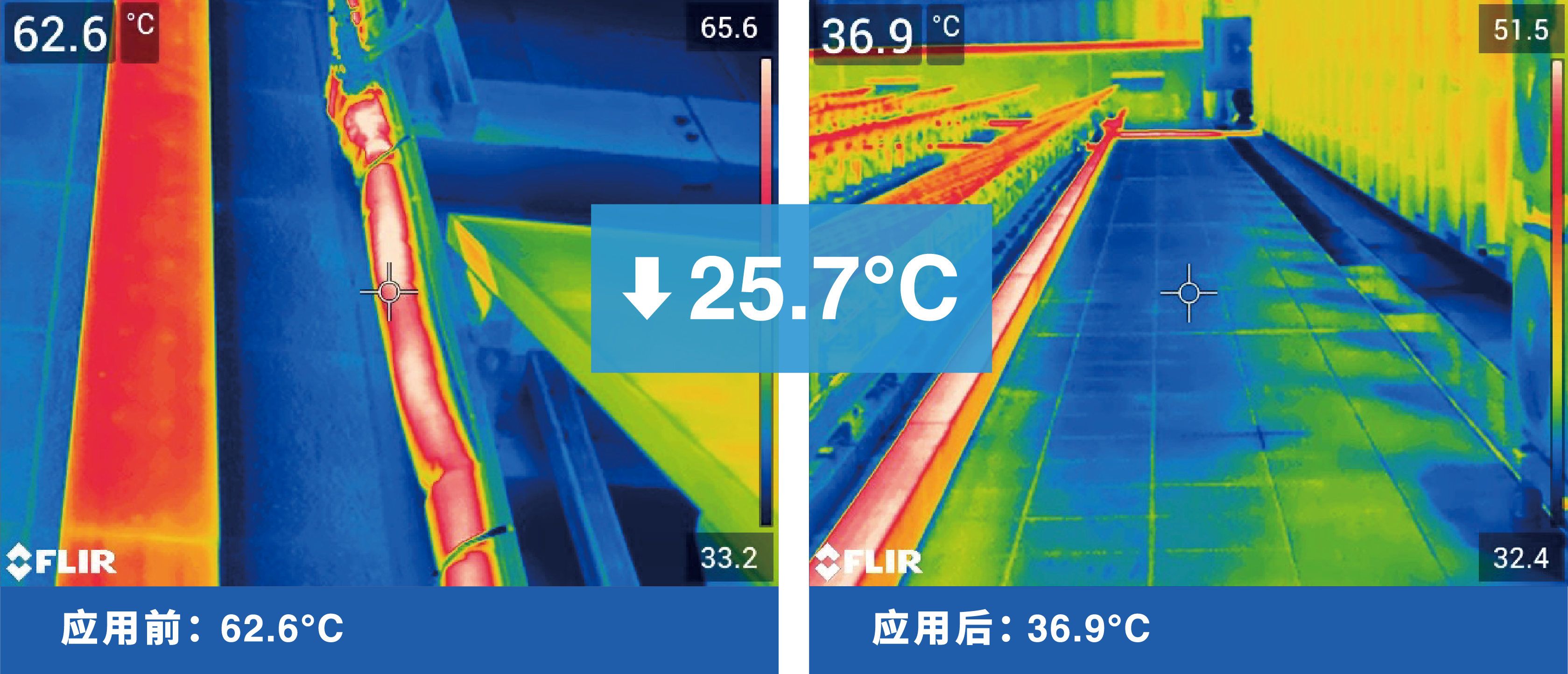 After applying iPint, the temperature decreased from 62.6 ℃ to 36.9 ℃